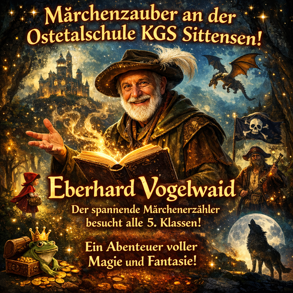 Am 24. Februar 2026 war der Märchenerzähler bei uns zu Gast und nahm alle Fünftklässlerinnen und Fünftklässler auf eine Reise in die Welt von Märchen mit.