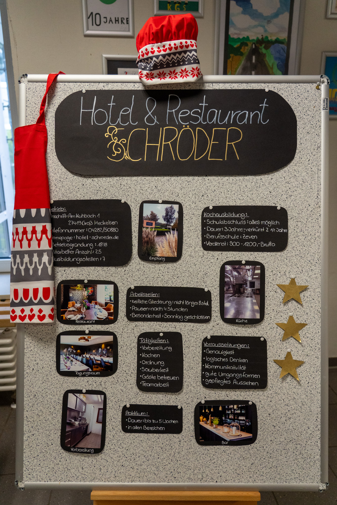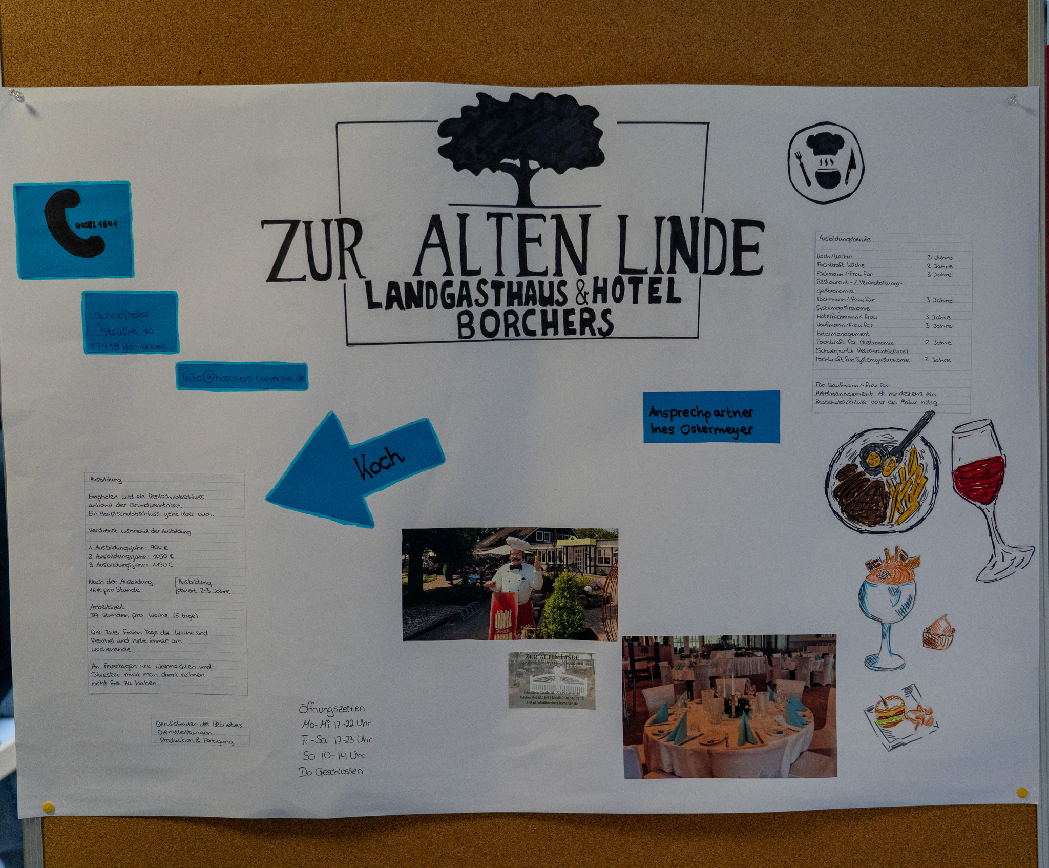 Viele weitere Unternehmen wie die Greif-Apotheke und das Fitnessstudio Casa Vitae oder auch die Firma HADI Haustechnik gehören seit vielen Jahren zum „Inventar“ der Berufsmesse und konnten auch diesmal wieder präsentiert werden. Das Restaurant „Zur Linde“ war das erste Mal und sehr spontan dabei, nachdem andere Unternehmen leider sehr kurzfristig abgesagt hatten. Somit geht ein großer Dank an alle Betriebe, die mitgemacht haben und wieder einmal für einen bunten Berufs-Mix im Herbst gesorgt haben. Das unermüdliche BO-Team, die im Vorfeld jeden Tag etliche Stunden ihrere Freizeit aufgebracht haben, gebührt ebenso ein dickes Dankeschön. Und im Gegensatz zu den SchülerInnen war die Arbeit der Lehrkräfte nach der Messe noch nicht beendet, denn nun gilt es, die Stände zu bewerten und die besten herauszufinden, zu evaluieren, Fotos zu sichten, Artikel zu schreiben...