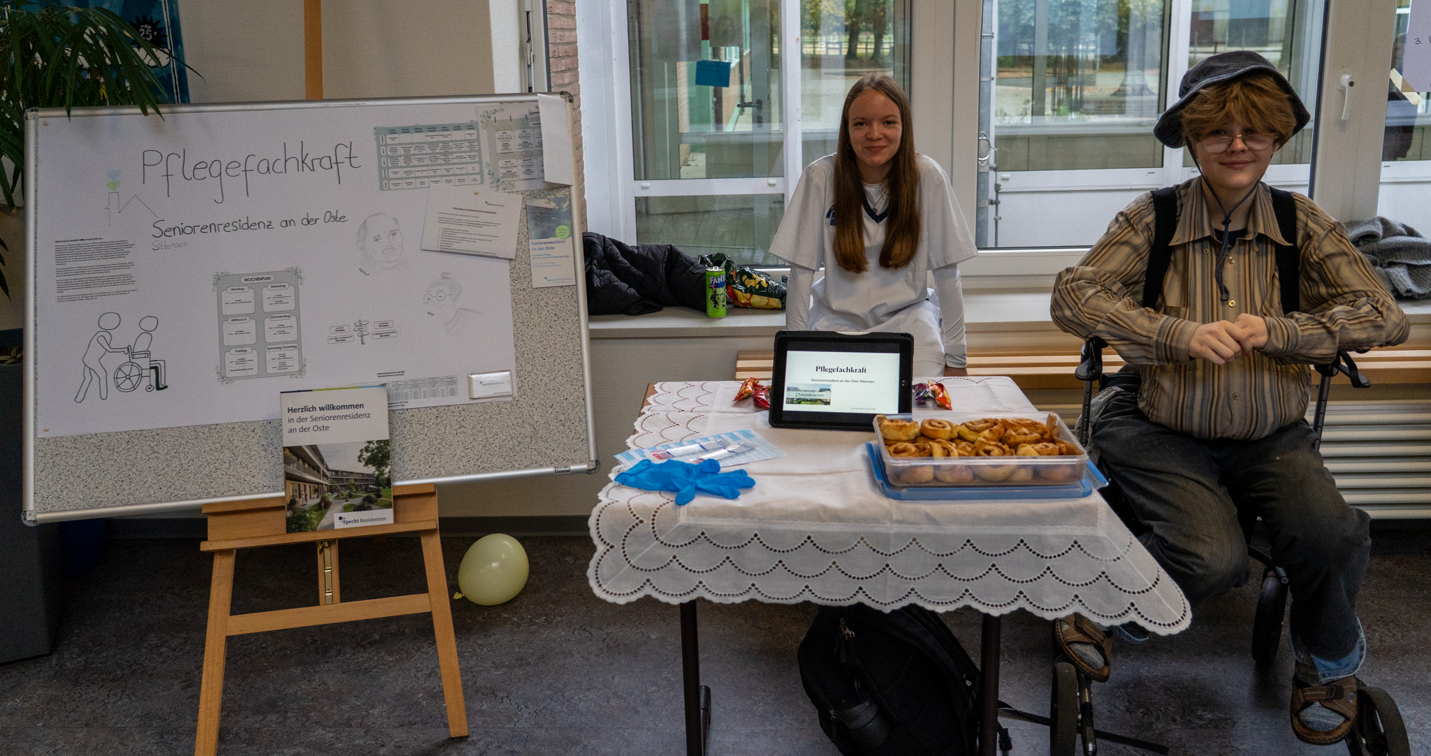 Personen, die es weniger kriminalistisch liebten, konnten bei dem Stand der Sparkasse Rotenburg-Osterholz eine Überweisung ausfüllen oder bei der Diakoniestation Sittensen ein kleines Memoryspiel mit verschiedenen Pflegemitteln und-geräten lösen. Traditionell stehen die Kitas bei den SchülerInnen hoch im Kurs und da hatten in diesem Jahr zwei ihre Türen geöffnet: die Villa Kunterbunt in Sittensen und die Arche Kunterbunt in Heeslingen. Auch hier bekamen die SchülerInnen einen guten, aber auch realistischen Eindruck: "Die Arbeit macht Spaß, aber es ist auch sehr anstrengend", so der allgemeine Tenor.