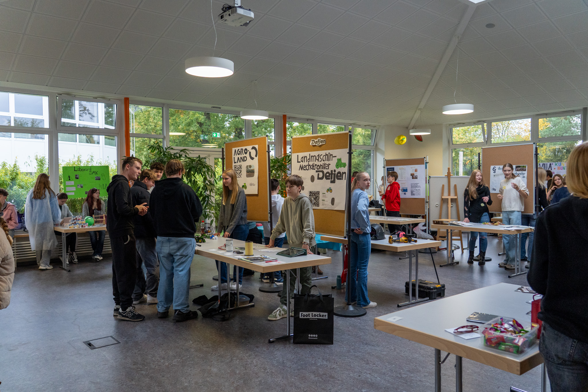 In der 9. Klasse steht das obligatorische Praktikum aller 9-KlässlerInnen an. Da bildete der 11. Tag der Berufe eine erste Vorbereitung bzw. weitere Orientierung. Das überaus emsige BerufsOrientierungs-Team hatte in den vergangenen Monaten versucht, verschiedenste Betriebe zu rekrutieren, die bereit waren, für ein paar Stunden Tor und Pforte zu öffnen, um den Jugendlichen einen ersten Einblick in den entsprechenden Beruf zu gewähren. Am 6. und 7. Oktober durften dann alle SchülerInnen der 9. Jahrgangsstufe ein paar Stunden die im Vergleich zur Schule etwas rauere Berufswelt erkunden. Die anschließende Aufgabe lautete, einen Messestand zu gestalten und dort das Berufsbild sowie den Betrieb in einem Kurzvortrag vorzustellen. Hier war der Fantasie keine Grenzen gesetzt und die SchülerInnen zeigten die ganze Palette ihrer Kreativität.