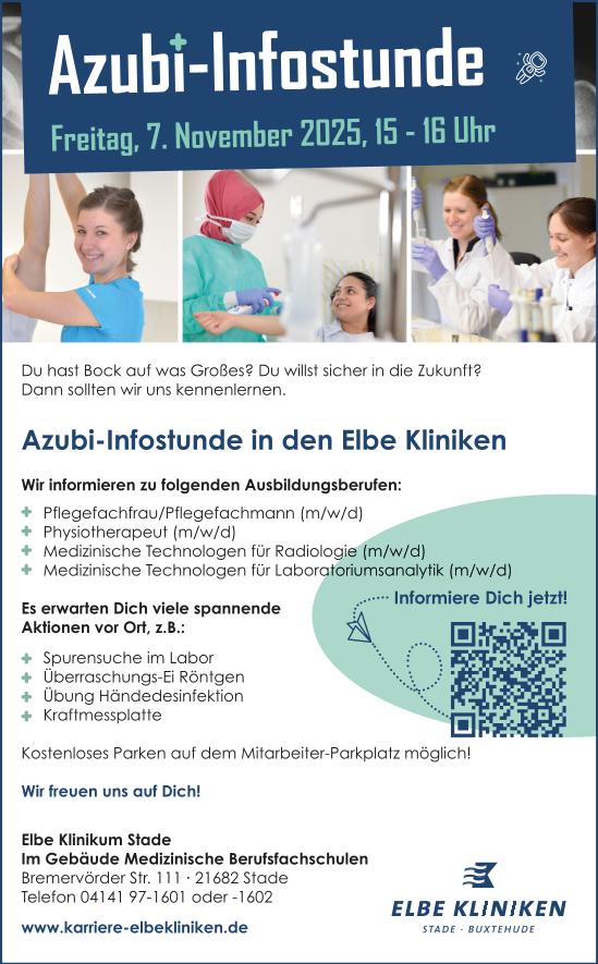 Schülerinnen und Schüler sind herzlich eingeladen, am Mittwoch, den 1. Oktober 2025 von 08:00 Uhr - 14:00 Uhr, die gemeinsame Ausbildungsmesse der BBS Zeven und BBS Rotenburg zu erleben.