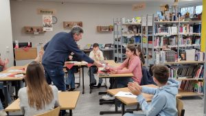 Der Schüler aus der 6a11 von Deutschlehrerin Britta Krüger hatte sich den Roman Woodwalkers von Katja Brandis ausgesucht.