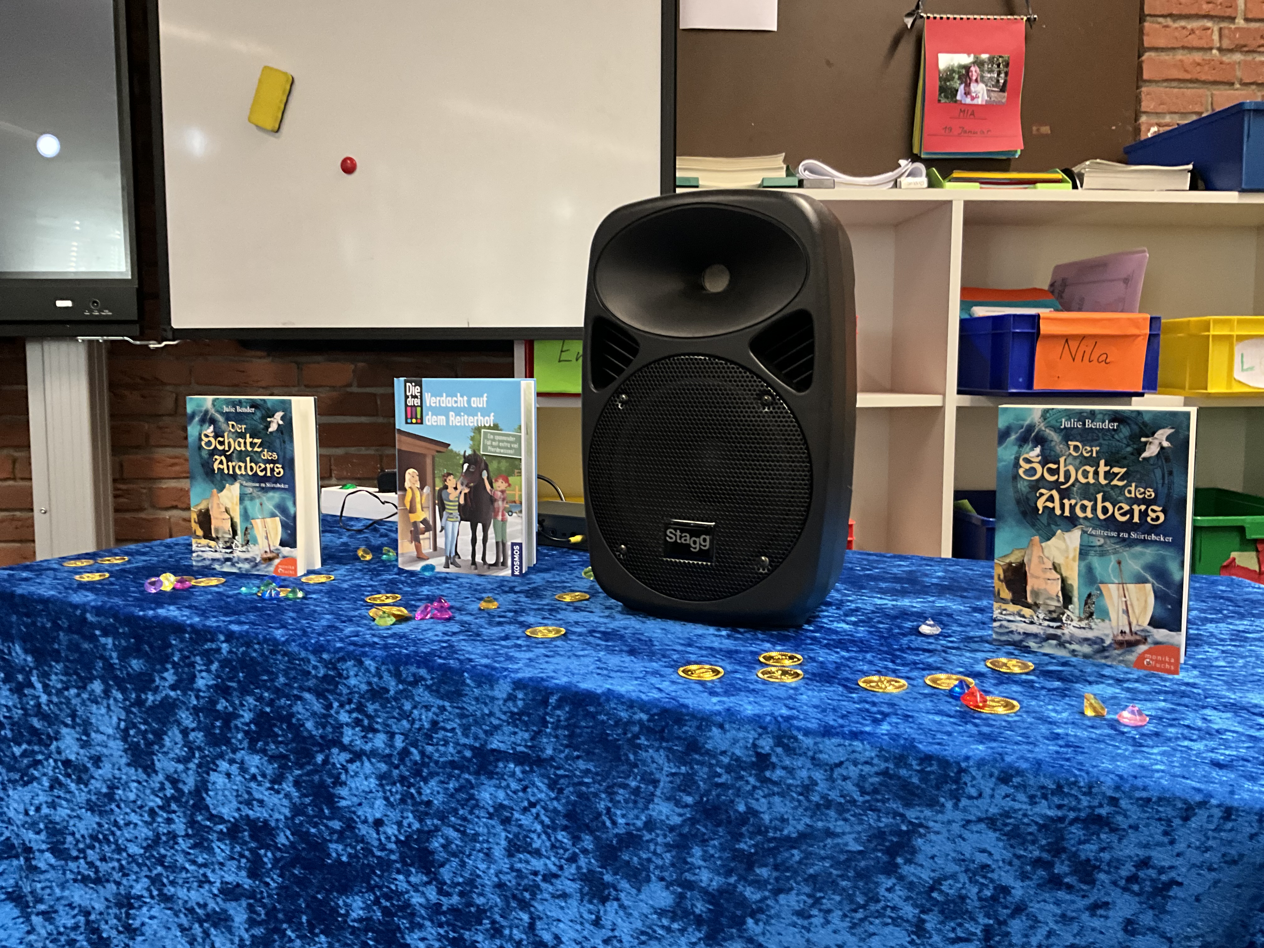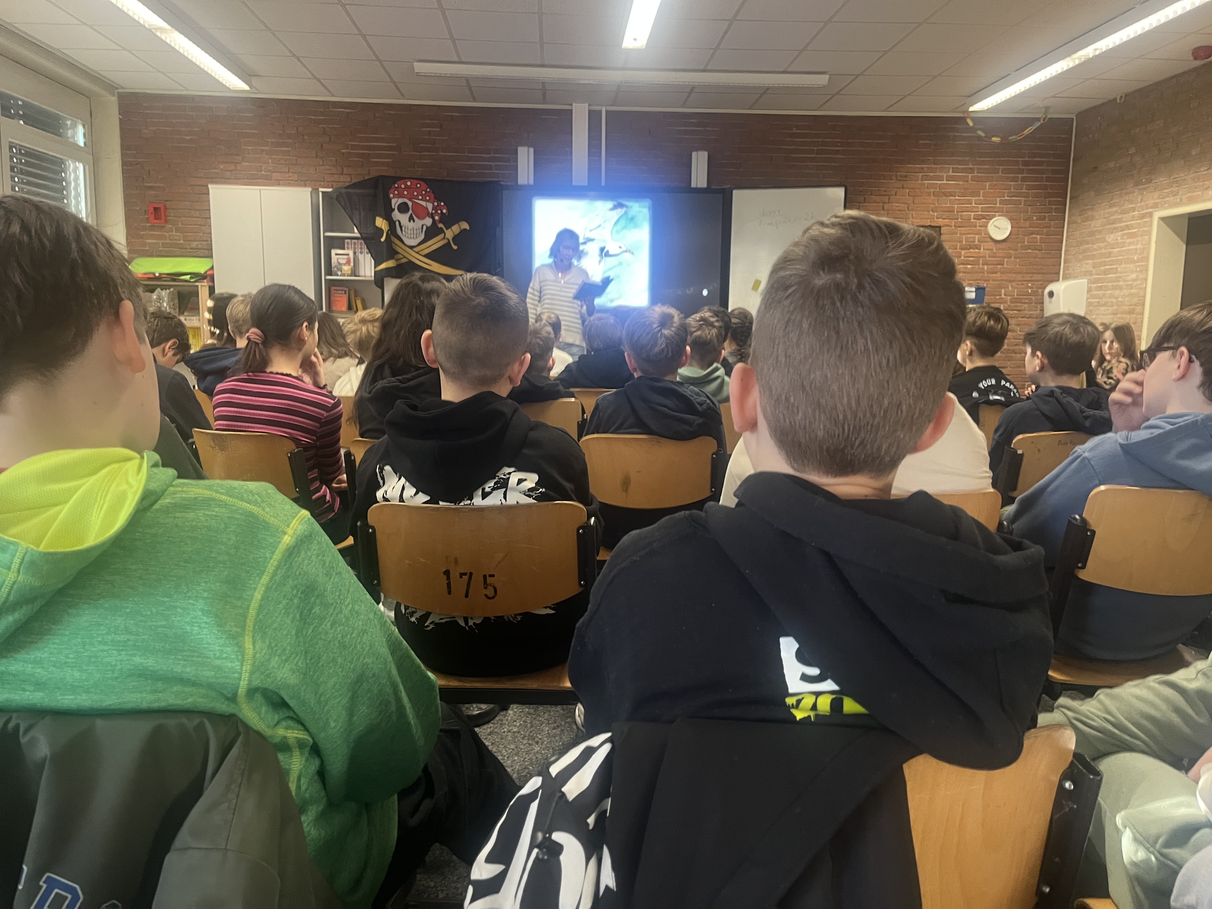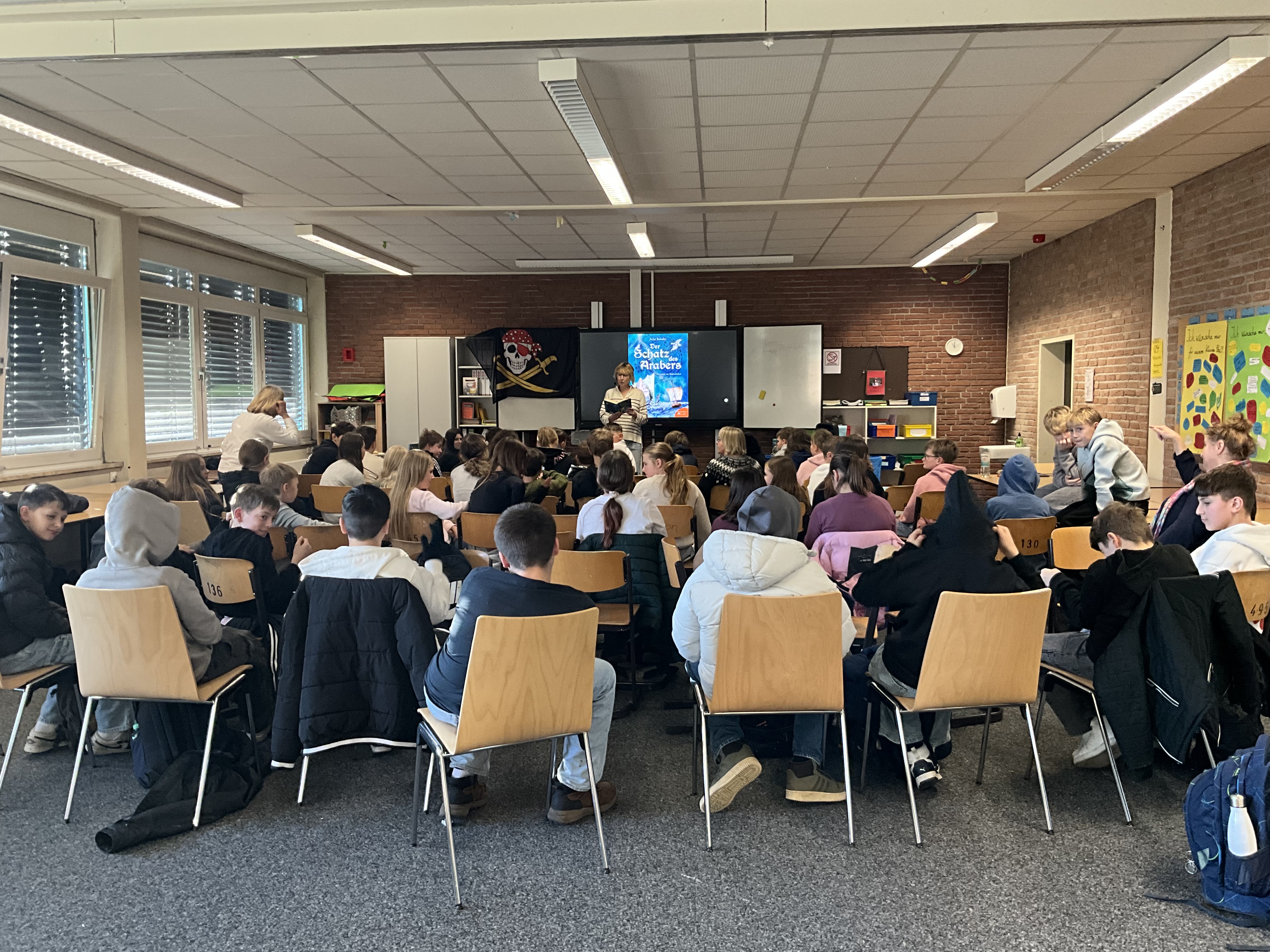 Am 20. und 21. Januar 2026 gab es Piraten an der KGS Sittensen, denn Julie Bender war bei uns zu Gast und nahm alle Sechstklässlerinnen und Sechstklässler auf eine abenteuerliche Reise in die Welt von „Der Schatz des Arabers“ mit. Hierbei handelte es sich nicht um eine gewöhnliche Lesung. Schon nach den ersten Minuten war klar: Es wird nicht einfach nur vorgelesen, sondern Literatur wird lebendig! Mit einer Piratenflagge, vielen Bildern, einer kleinen Schatzkiste und spannenden Quizfragen verwandelte Julie Bender den Klassenraum beinahe in ein Piratenschiff. Die Schülerinnen und Schüler lauschten gebannt den vorgelesenen Textstellen und fieberten beim Betrachten von interessanten Fotos gespannt mit.