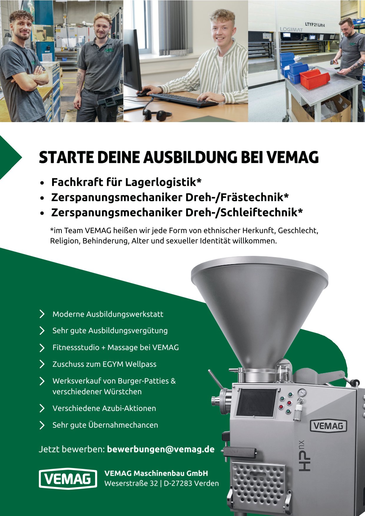 Der Betrieb bietet eine abwechslungsreiche und praxisorientierte Ausbildung mit guten Übernahmechancen und Entwicklungsmöglichkeiten.